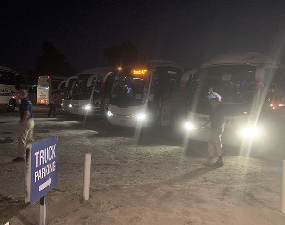 Jamboree Bus's stopped at a rest area