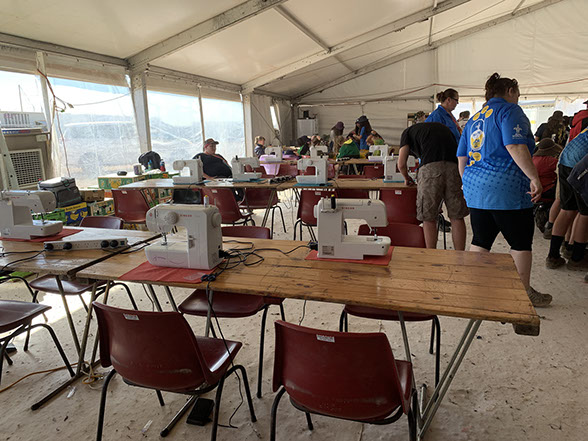 Making tables in the trade tent.