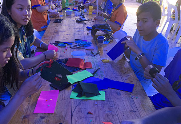 Making mosaics in the trade tent