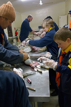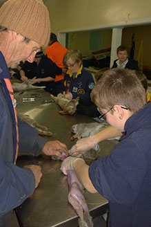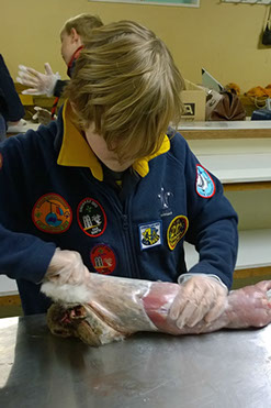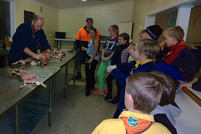 Cubs and Scouts had a lesson in how to skin, gut and cook a rabbit. Some of them found it a little challenging but with glove on hand, they all rose to the challenge.