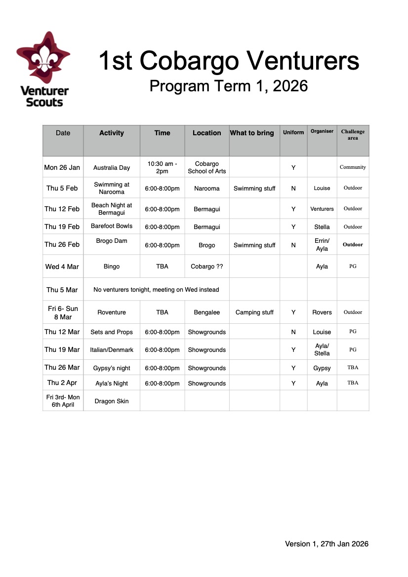 Stuck for program ideas,then take a look at our old Venturer Programs