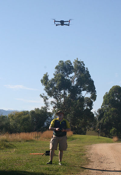 Looking up at the drone